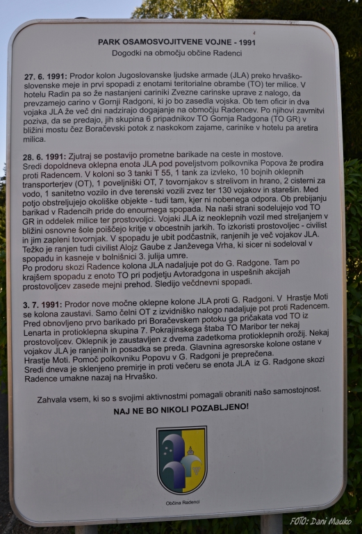 8. Informativna tabla: »PARK OSAMOSVOJITVENE VOJNE 1991 - O DOGAJANJU NA OBMOČJU OBČINE RADENCI«